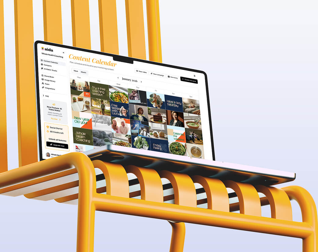 With Aida, small and medium size businesses can finally punch well above their weight - without the eye-watering budgets. Our AI marketing assistant sorts your brand strategy, whips up a month of genuinely on-brand content in minutes, and runs your social campaigns from start to finish. You set the goals, Aida does all the donkey work, so you can get back to building your empire.